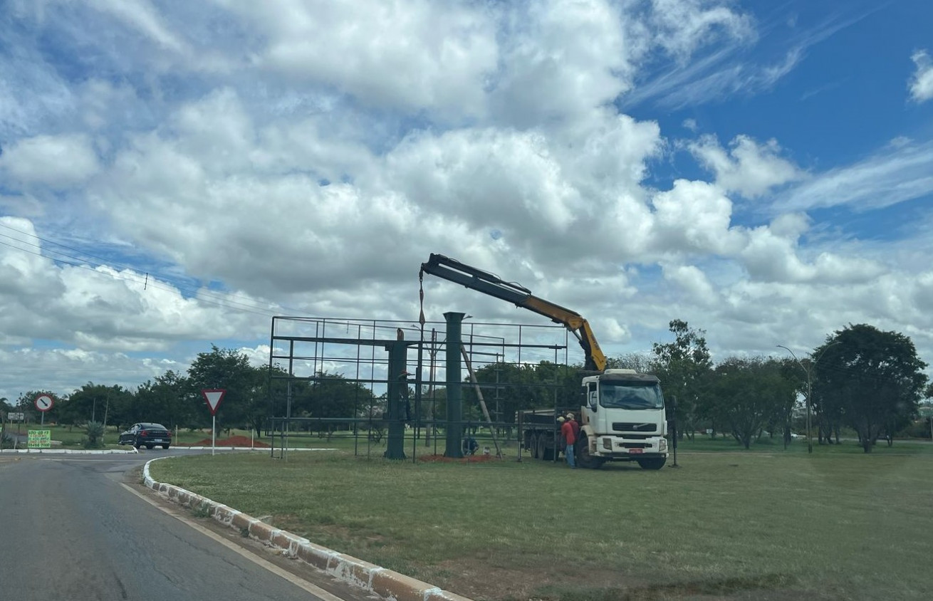 Na surdina, em pleno domingo, começou a ser montada uma estrutura de painel duplo na quadra 14 do Park Way. Um leitor de "Brasilianas" fez o registro.