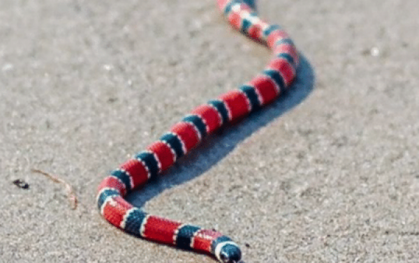Uma fotógrafa do litoral de São Paulo foi surpreendida por uma cobra coral verdadeira ao andar na areia da praia da Trincheira, no extremo sul de Ilha Comprida, litoral de São Paulo.