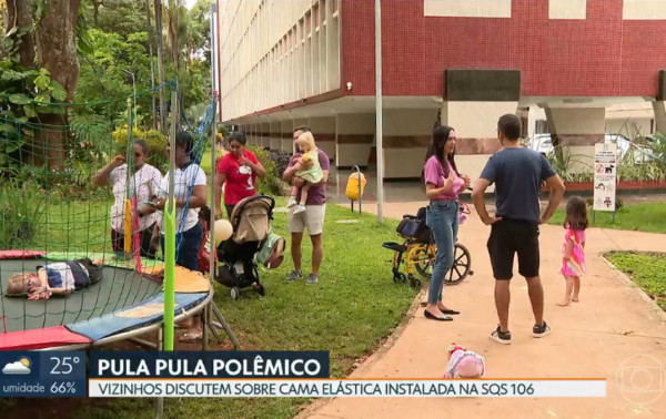 Voltando mais uma vez ao pula-pula. A regra diz que para ele ficar lá, é preciso autorização... Mas, como os moradores podem obter essa autorização? Segundo a TV Globo, nem o DF Legal nem a Administração Regional do Plano Piloto têm essa resposta.