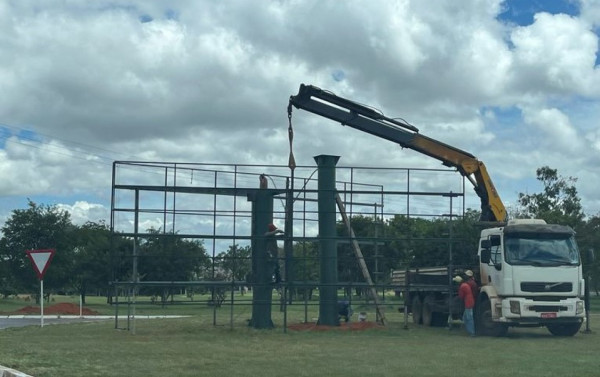 Na surdina, em pleno domingo, começou a ser montada uma estrutura de painel duplo na quadra 14 do Park Way. Um leitor de "Brasilianas" fez o registro.