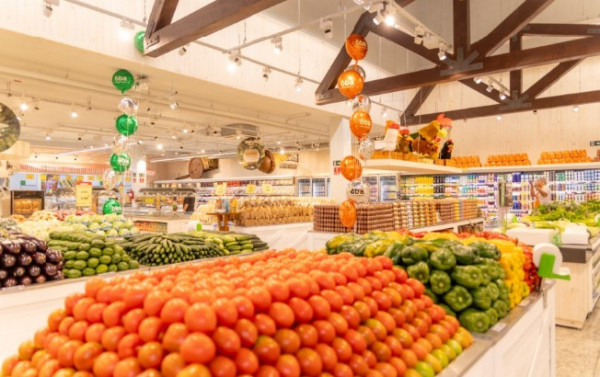 Com quase mil metros quadrados, a loja reúne setores de frutas, legumes e verduras, açougue, peixaria, adega, mercearia, frios, floricultura, rotisseria e padaria.