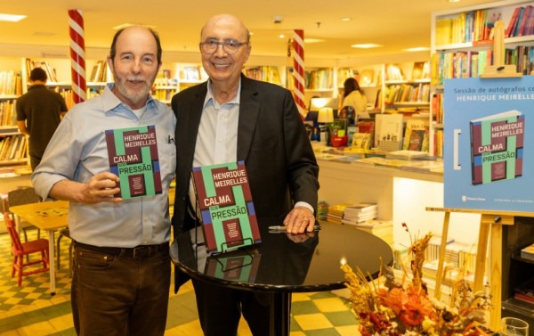 Ao lado de sua esposa, Eva Missine, Meirelles recebeu personalidades como Armínio Fraga, ex-presidente do Banco Central; Moreira Franco; Fabiano Horta, prefeito de Maricá; João Maurício de Freitas, o Joãozinho, presidente do PT do RJ e vice-prefeito eleito de Maricá; e Marcos Silveira, da gestora de recursos Legend, atento ao livro já na fila de autógrafos.