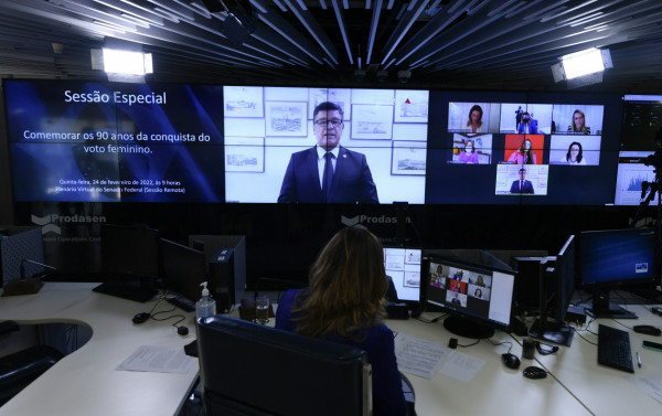 Vice-presidente da Câmara durante a pandemia de covid-19, o ex-deputado Marcelo Ramos (PT-AM) deu a sugestão que acabou acatada pelo presidente do Senado, Davi Alcolumbre (União-AP). Alcolumbre fará nesta quinta-feira (7) sessão virtual a partir da sala de TI do Centro de Processamento de Dados do Senado (Prodasen). Na pandemia, Ramos presidiu várias sessões do Congresso assim. A sala foi preparada com diversos telões que permitem aos senadores entrarem simultaneamente das suas casas nos seus estados. A Câmara tem estrutura semelhante que também usou na covid-19. Mas Hugo Motta resolveu enfrentar os deputados "grevistas" de oposição. Na noite de quarta mesmo, resolveu fazer sessão presencial.
