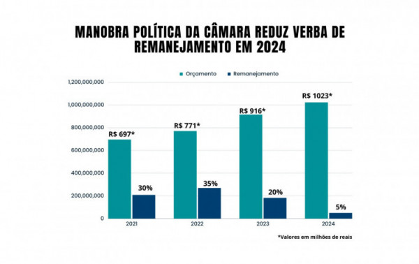 Em anos anteriores, de 2011 a 2017, por exemplo, a verba que poderia ser remanejada poderia ser de até 50%. Entre 2021 e 2023, foi entre 20% e 30%. Agora, em pleno ano eleitoral, os vereadores limitaram o menor percentual possível.