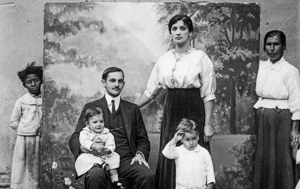A imagem foi feita por Chichico Alkmim, retratista mineiro bastante visado na época. A mulher e a menina negra, que se revelaram só quando o filme foi recuperado cem anos depois, não apareciam no recorte original da foto. Exposta em grande escala no Instituto Moreira Salles, a imagem se tornou um símbolo didático do que as famílias abastadas expunham ao mundo - e do que escondiam.