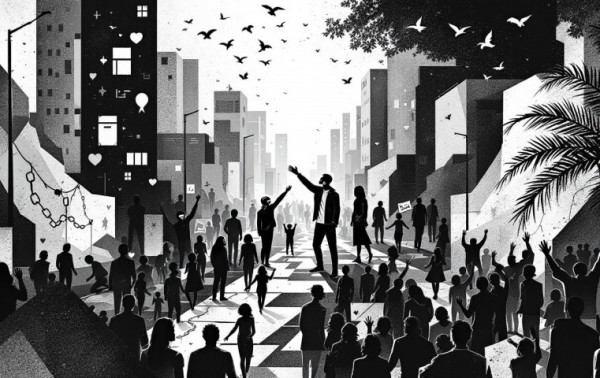 Tenho visto o ir e vir, a correria, a luta louca para se manter o respeitável posto de trabalho e, consequentemente, dinheiro para comer. Tem os ônibus e trens cheios, as pessoas oprimidas. Com fones de ouvido para se esconder do mundo. Tem as mãos mendigas estendidas, cheias de rugas e sofrimento, esperando o fim de vida menos triste, mas nem tudo é só derrota. Às vezes há construções: quando é possível, a gente faz festa, tem Carnaval, tem show na praia e as pessoas fazem seu churrasco. No fim do ano vêm as festas e alguns se abraçam, outros fingem que são felizes, outros desejam o melhor para todo mundo. Somos muito individualistas, mas nessa hora a gente mostra algum serviço.
