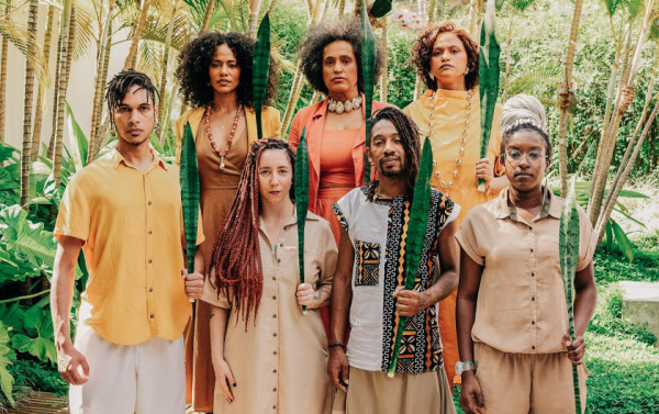O grupo tem em sua formação três núcleos distintos. O trio vocal lidera com suas vozes, enquanto as cordas, incluindo viola caipira, baixo elétrico, violino e rabeca, adicionam uma dimensão climática à música. Este formato de trio é uma homenagem às tradições musicais africanas, onde a presença de três berimbaus em rodas de capoeira e três atabaques em rituais de terreiros é comum, simbolizando a conexão espiritual e musical.