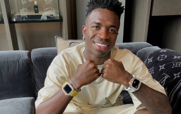 Em dezembro do ano passado, Vini Jr. publicou fotos assistindo a um jogo de basquete nos Estados Unidos. Na ocasião, ele usou um relógio da mesma marca, com tons de vermelho avaliado em 1.490 euros, cerca de R$ 7.700.