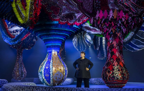 Joana Vasconcelos tomou de assalto o desfile da Dior na Semana de Moda de Paris com uma instalação exuberante na passarela. A artista plástica portuguesa dominou o espaço com mais de uma tonelada de tecidos coloridos e de texturas variadas, todos da coleção da própria Dior, espalhados pelo teto e pelo decorrer da passarela.