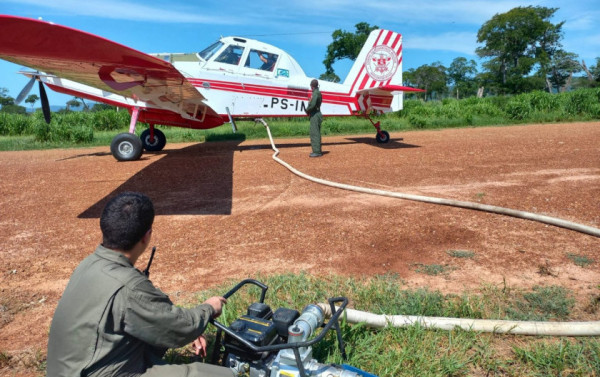 Cada aeronave carrega 3 mil litros de água. O abastecimento ocorre em, no máximo, cinco minutos. Os air tractos atuam na região desde a quinta-feira (dia 1º), com lançamentos diários - partindo da fazenda Santa Tereza.