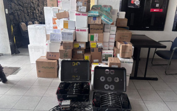 No bagageiro do veículo, os policiais encontraram 151 caixas com diversos produtos farmacêuticos, entre eles canetas emagrecedoras, além de malas com bloqueadores de sinal, equipamento usado para impedir o rastreamento do automóvel. A carga e o veículo foram apreendidos e encaminhados à delegacia.