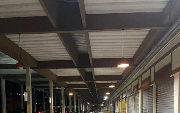 Apesar do percentual de andamento, foram identificados problemas estruturais no Terminal Rodoviário, como fios na fachada, condensadoras irregulares, infestação de pombos, entre outros.