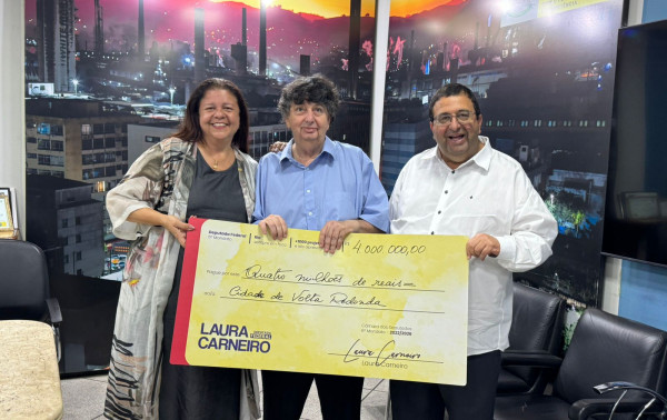 O deputado estadual Munir Neto e a deputada federal Laura Carneiro, ambos do PSD, entregaram um cheque simbolizando os R$ 4 milhões destinados pela deputada, por meio de emenda parlamentar, para o prefeito de Volta Redonda, Antônio Francisco Neto, que serão utilizados em custeio para a área da Saúde no município. A entrega foi realizada no gabinete do prefeito, na noite desta quinta-feira (29), quando Laura realizou uma série de agendas no Sul Fluminense.
